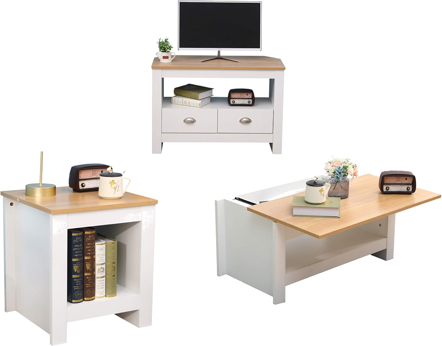 The combination of cool white with the warmth of natural wood creates a very peaceful arrangement. You have searched for tv stand and coffee table set and this page displays the closest product matches we have for tv stand and coffee table set to buy online. 20% coupon applied at checkout save 20% with coupon. Our range of plasma stands, coffee and side tables. Leick home coastal notions side wedge table, swan black.