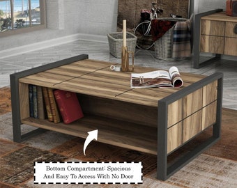 Coffee table, square cocktail table with spacious table top with storage shelf.